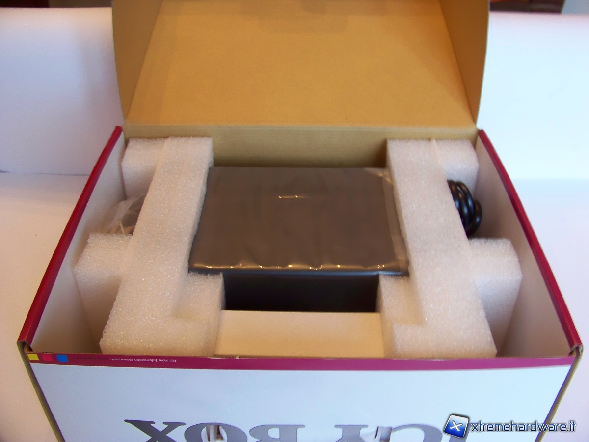 Apriamo la scatola e notiamo immediatamente che il prodotto è avvolto da un cellophane e bloccato da 2 pezzi sagomati di poliuretano espanso che ne impediscono qualsiasi tipo di movimento.