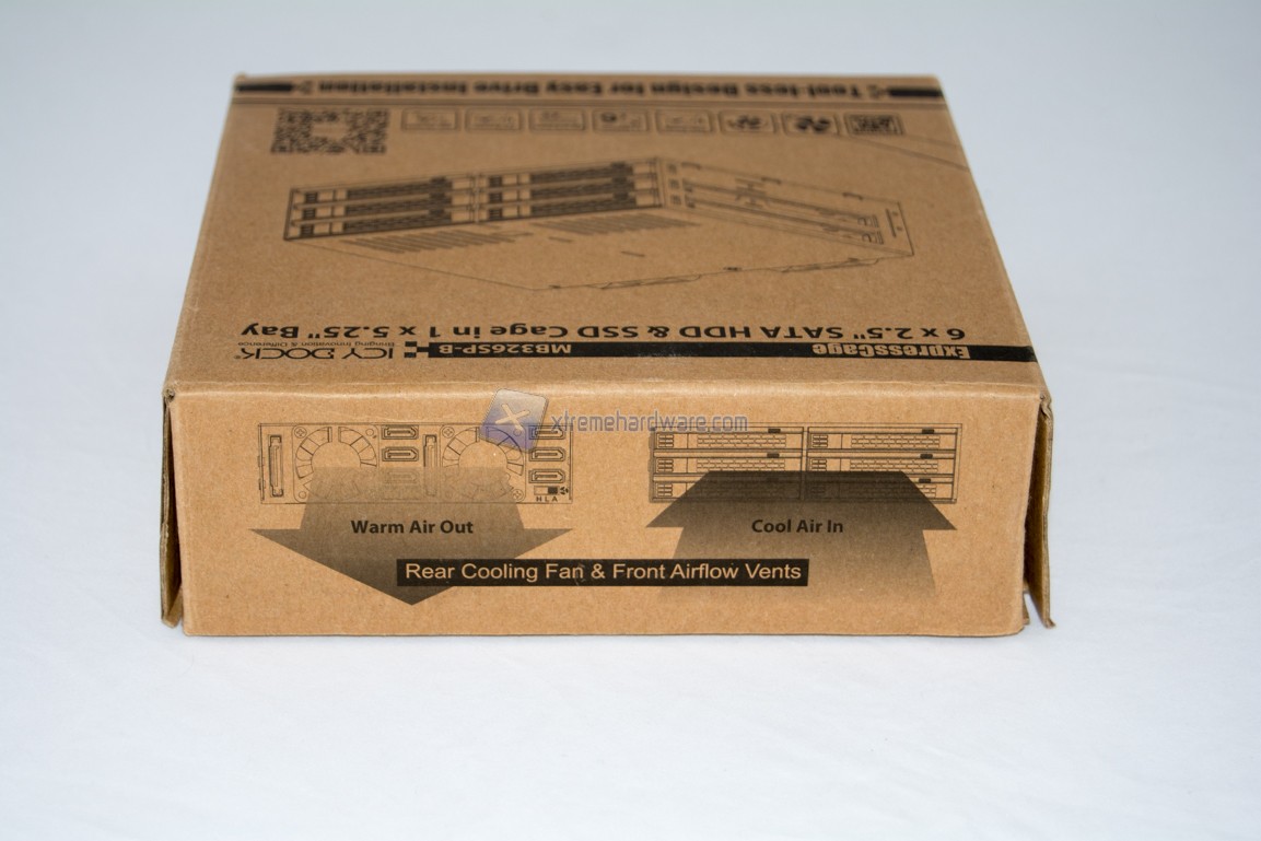 I due lati corti della confezione riportano, invece,lo schema relativo al flusso d’aria creato grazie alle due ventole poste sul retro del prodotto in estrazione ed alla griglia frontale, e lo schema di installazione toll-less.